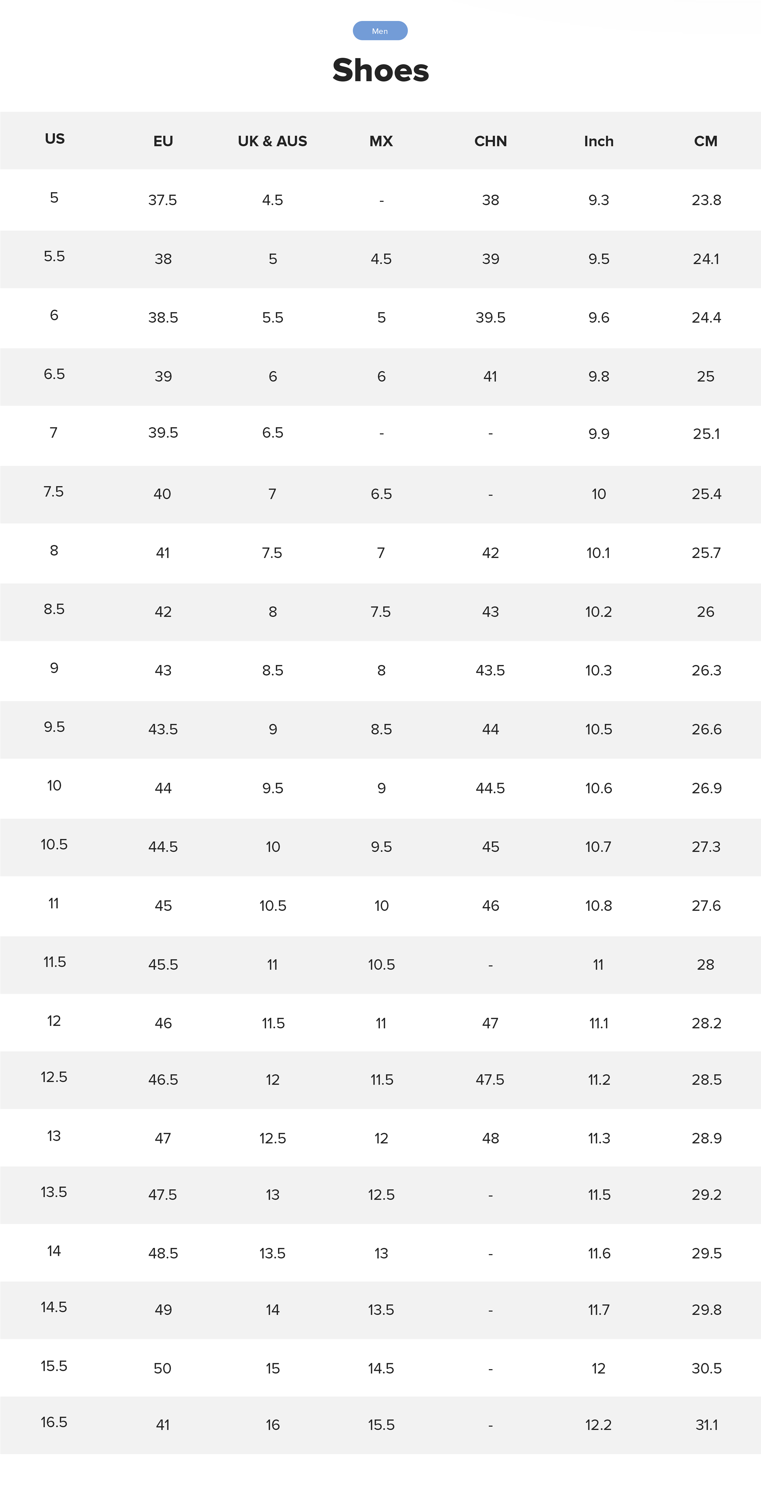 Shoe size